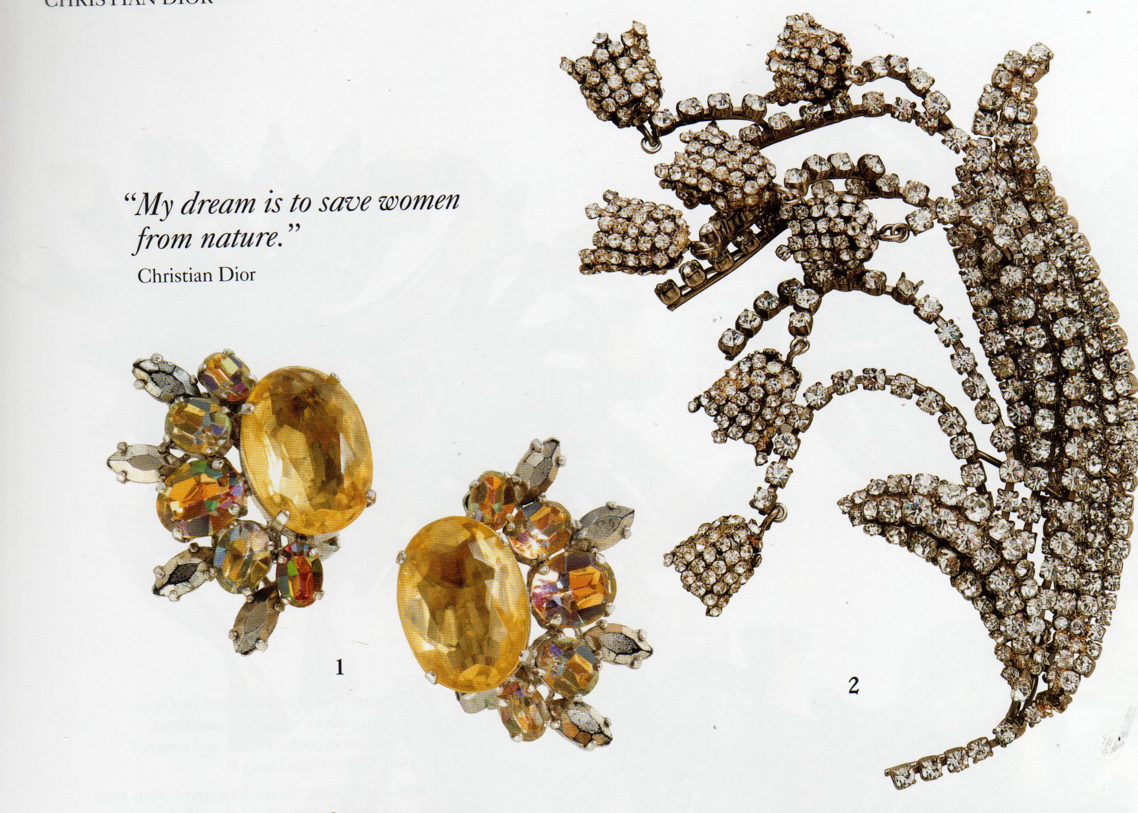 Coco Chanel loved to use a diamante brooch to embellish her little black dresses. Christian Dior, Miriam Haskell, Trifari, Butler & Wilson and Swarovski have all used diamantes in their costume jewellery.